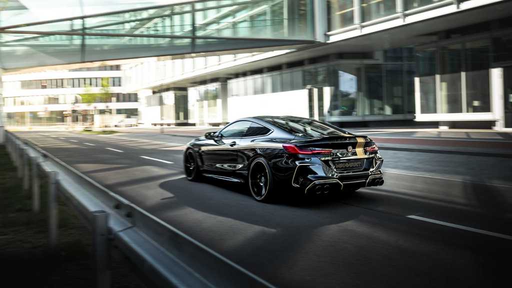 Manhart menambahkan spoiler lip pada bagian depan dan belakang, serta diffuser berbahan serat karbon. Juga kombinasi warna emas pada sekujur tubuh M8 Competition dan velg berukuran 9×21-inci (depan), 10,5×21-inci (belakang), Manhart Concave One, dibalut dengan ban ZR21 ukuran 265/30 (depan), 305/25 (belakang).